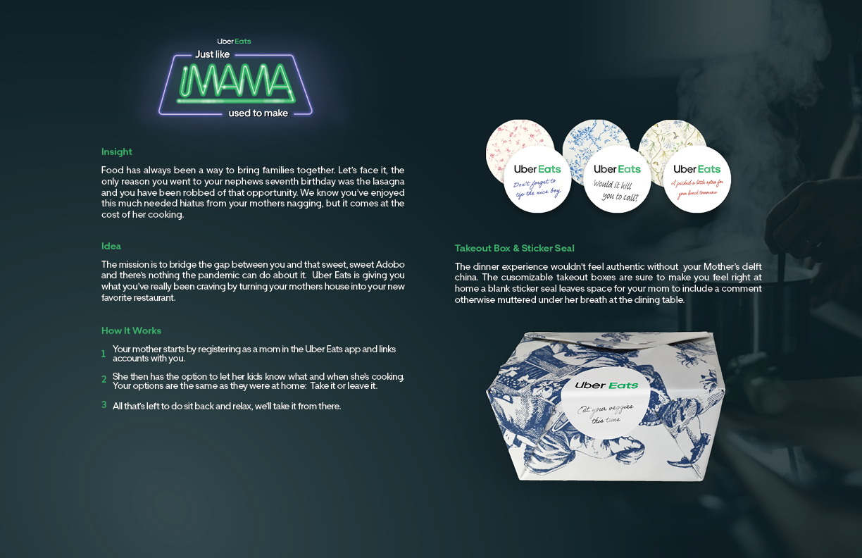 Uber Eats Just like Mama used to make Bronze - Art & Design Club of Canada’s 2021 student competition Creative Partner - Riley Dawdy